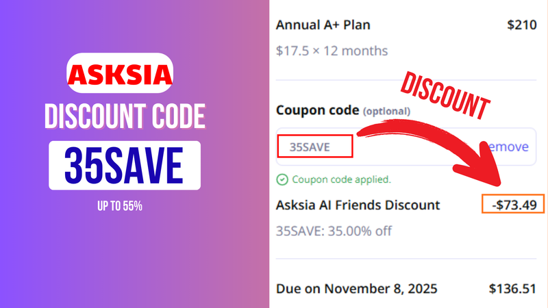 It stacks an additional 35% OFF on top of Asksia’s ongoing promotions.