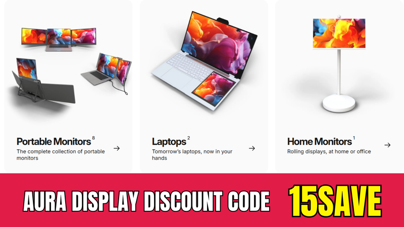 Aura Displays builds industry-leading portable monitors, triple-screen laptop extenders, and lightweight productivity displays. With the end-of-year 2025 stacking discount, your purchase becomes significantly cheaper β combining sitewide promotions with the extra 15% OFF from 15SAVE for an unbeatable price.