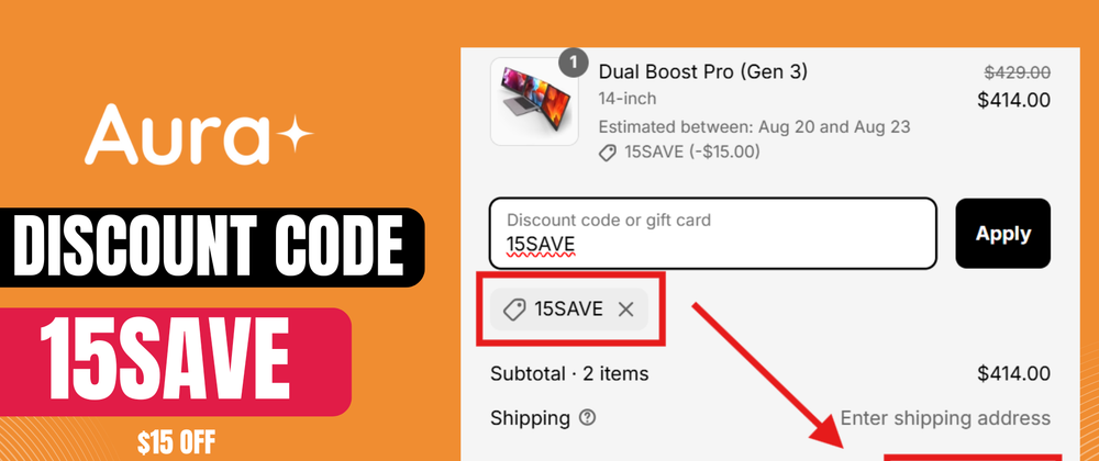 As of early 2026, shoppers can use Aura Displays discount code 15SAVE to get $15 OFF when purchasing directly from the official Aura Displays website.