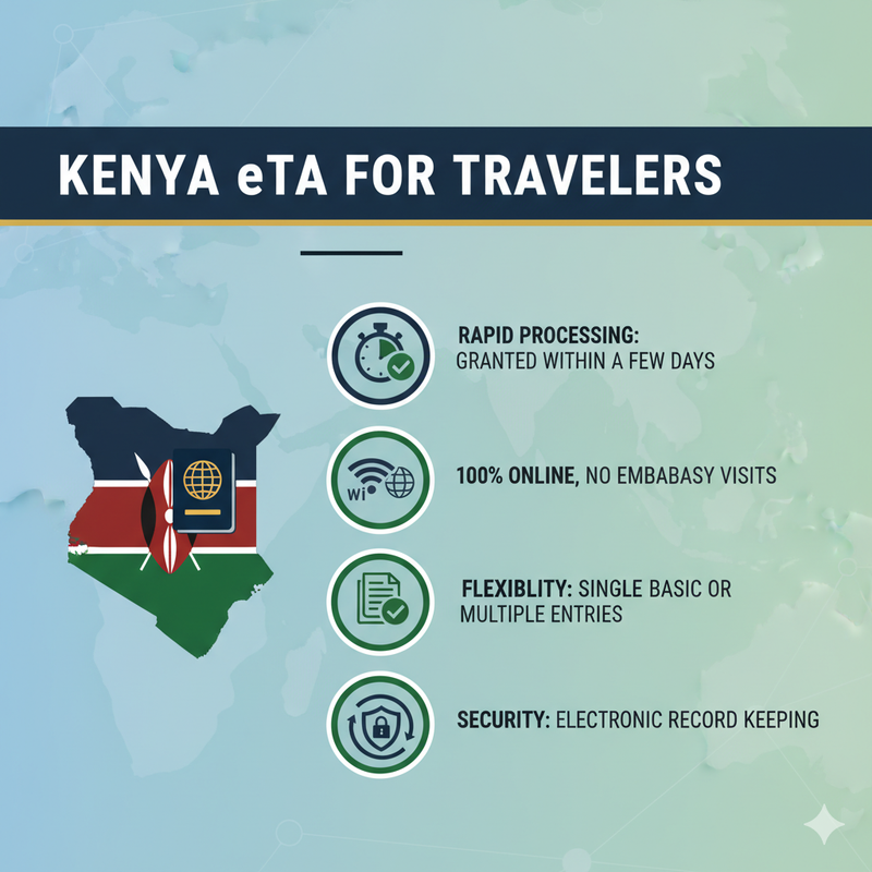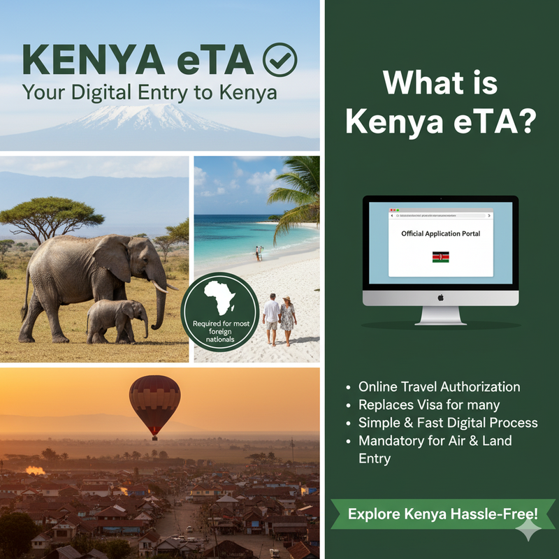 The Kenya Electronic Travel Authorization (ETA) is an online travel permit, which enables foreign citizens to travel to Kenya either as a tourist, business person, or transit. The ETA is done online and is therefore quick, convenient, and accessible as compared to the traditional visas that had to be submitted physically in embassies.