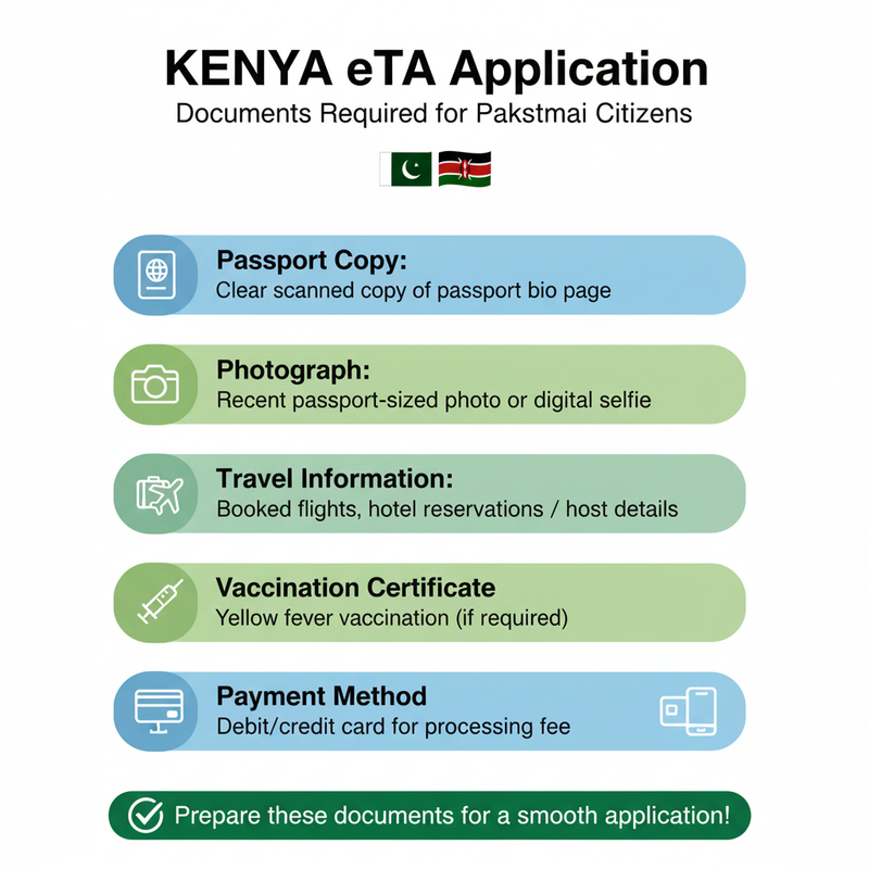 The Pakistani citizens seeking Kenya ETA require the following: