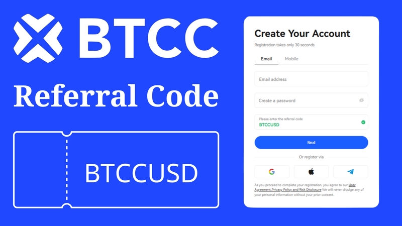 The BTCC Referral Code: BTCCUSD is an official BTCC invitation code that activates exclusive rewards when you sign up for a new account.