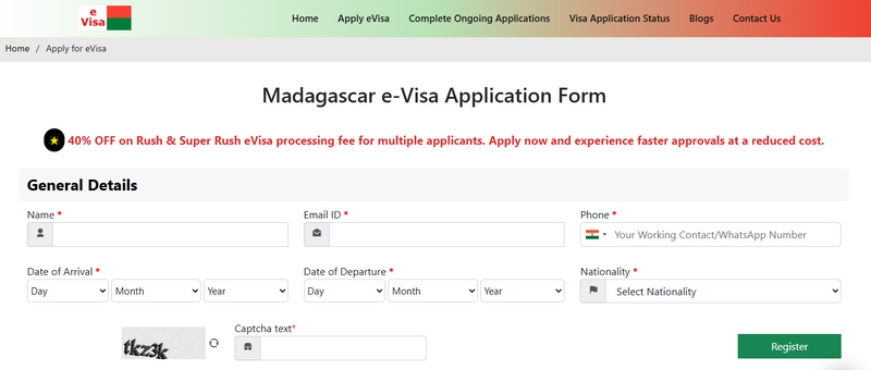 - Visit the official service for Madagascar’s eVisa. For example, the official platform at evisamada-mg.com provides the service.