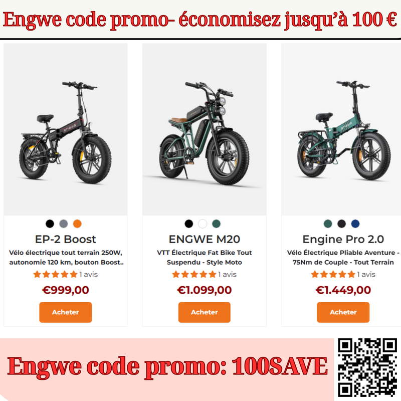 Actuellement, sur le site officiel et revendeur agréé Engwe en France, vous profitez déjà de remises importantes.