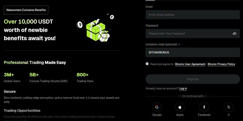 Sign up on the official Bitunix platform