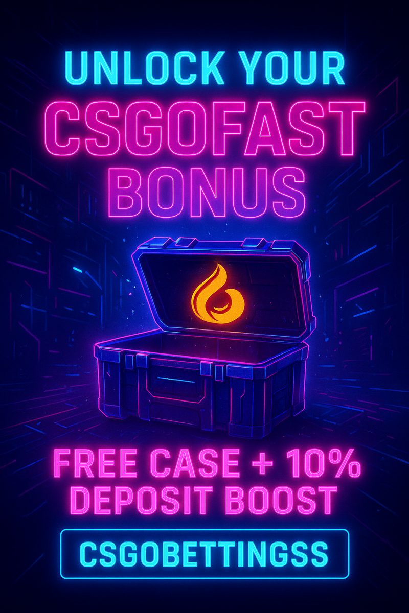Secure your Free Gift Case and 10% Deposit Bonus today by using the powerful CSGOFast promo code CSGOBETTINGSS!