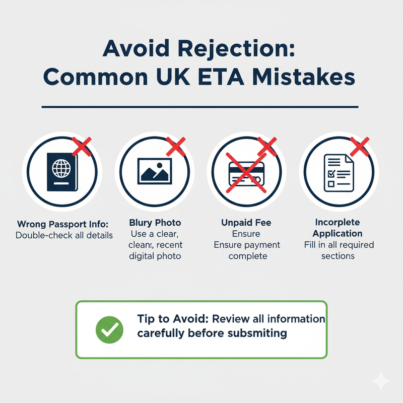 Although the UK ETA Application is straightforward, applications may be refused due to errors or inconsistencies.