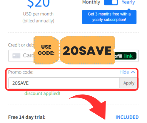 Double-check spelling and subscription selection. Always use DealCheck IO promo code 20SAVE exactly as written to get the discount.