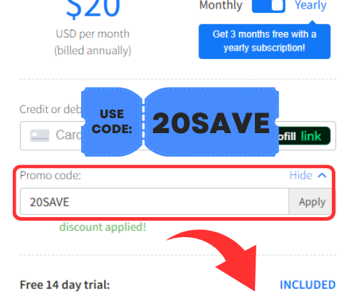 💡 Quick Tip: Use this verified code at checkout to instantly save up to 20% on all paid plans, including Plus and Pro.