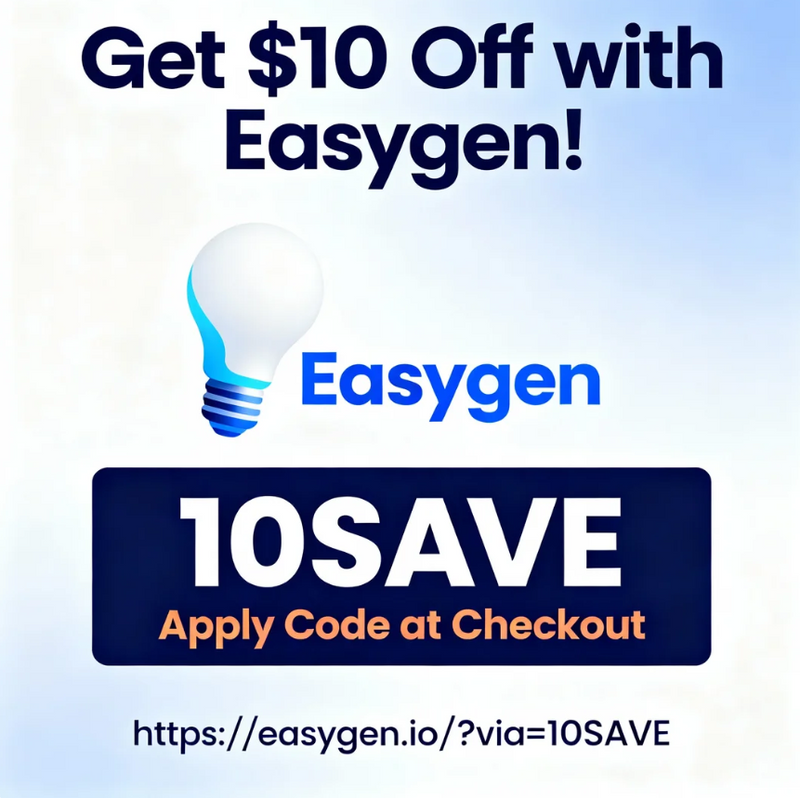 Transform your productivity this December 2025 with Easygen's intelligent automation tools — and unlock an instant $10 discount when you enter Easygen promo code: 10SAVE at checkout. This month’s special promotion, combined with Easygen’s powerful content and workflow features, makes it the perfect moment to start.