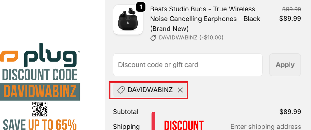 - Enter the Plug Tech Discount Code DAVIDWABINZ at checkout.