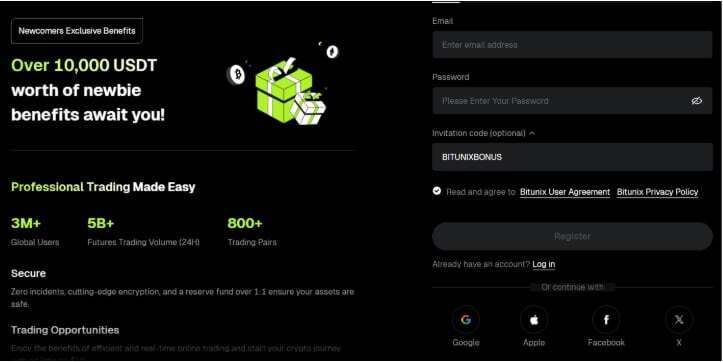 Sign up on the https://www.bitunix.com/register?vipCode=BITUNIXBONUS
