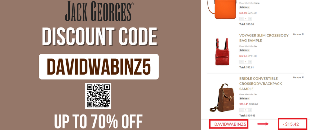 Use Jack Georges Promo Code DAVIDWABINZ5 now to secure the best combination of quality, style, and savings.