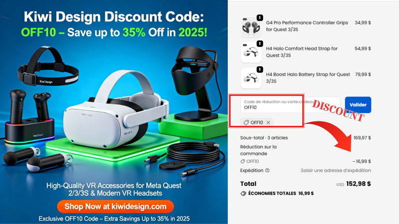 Kiwi design discount code: OFF10 – Save up to 35% Off and unlock the most powerful, comfortable, and immersive Meta Quest 3S setup of 2025!
