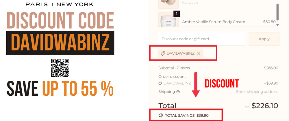 - Proceed to checkout and enter DAVIDWABINZ in the promo code box to apply the discount.