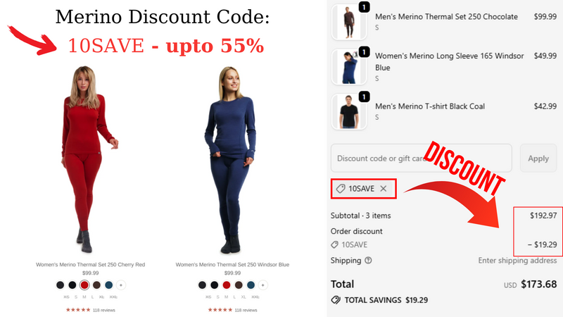 π Shop directly at Merino.com and use Merino Promo code :10SAVE to secure an EXTRA 10% OFF instantly.