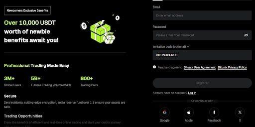 Enter BITUNIXBONUS in the referral code field during registration