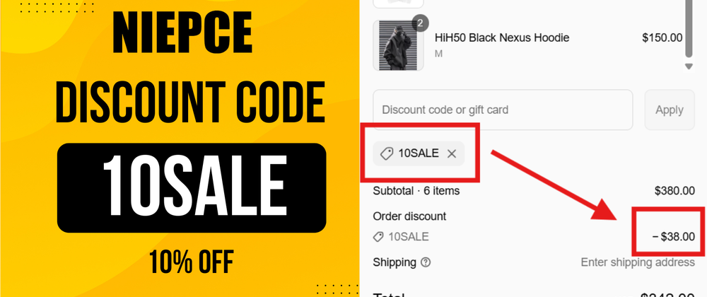 For example, a Niepce jacket priced at $160 drops to $144 immediately after applying 10SALE, making it an easy way to save on premium streetwear in 2026.
