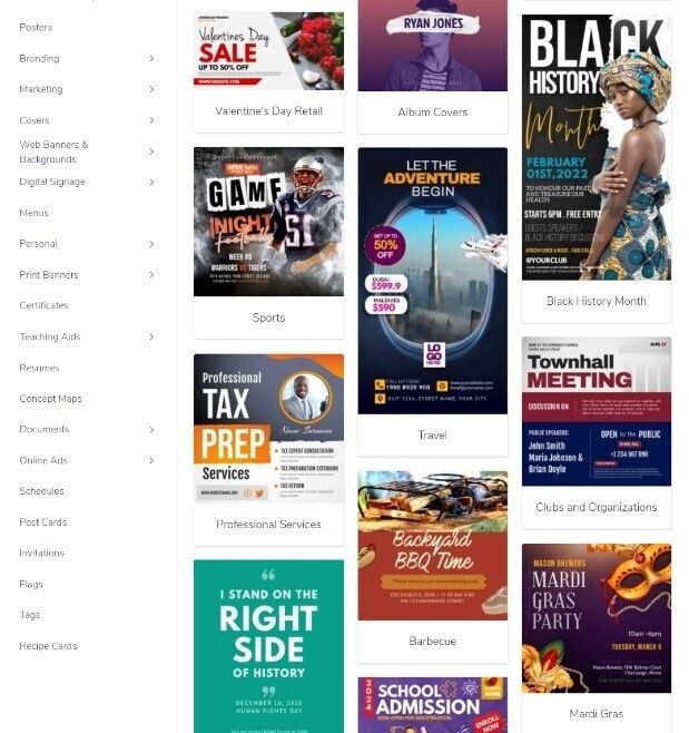 PosterMyWall boasts a consortium of about 4 million design templates. They all depend on the kind of design you wish to make. They include: