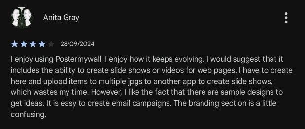 Here is some customer feedback from using PosterMyWall sourced from the company website, Google Play Store and Trustpilot