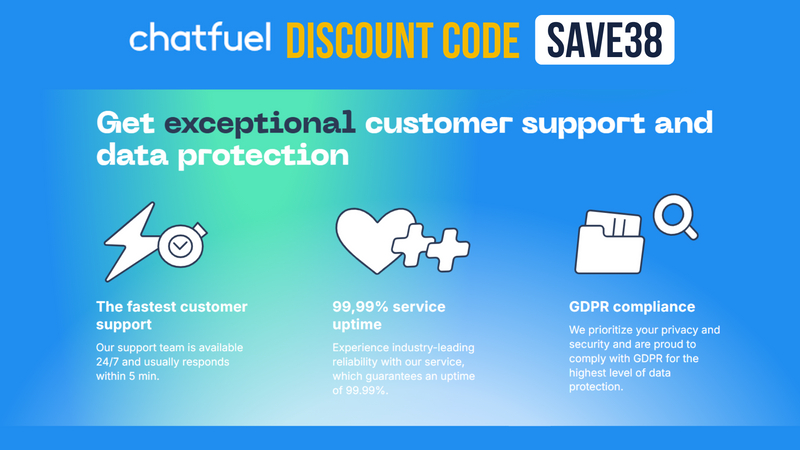 Quick Tip: Use Chatfuel Promo Code SAVE38 or Chatfuel Coupon SAVE38 to receive Extra $38 OFF for any order at chatfuel.com. This is one of the easiest ways to start high-level chatbot marketing at a lower cost.