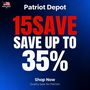 and apply Patriot depot coupon code: 15SAVE for unbeatable value.