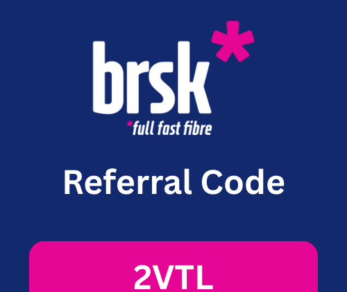 If you’re planning to switch to brsk, one of the UK’s fastest-growing full-fibre broadband providers, here’s an exciting offer you shouldn’t miss. By using the Brsk Referral Code “2VTL”, you can claim a FREE £50 Amazon Gift Card when you join any eligible brsk broadband plan. This referral bonus is a great way to save money while upgrading to lightning-fast fibre internet with no hidden costs.
