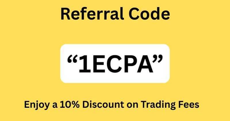 - 10% Off Trading Fees Trading fees can significantly affect your profit, especially if you trade frequently. With the referral code “1ECPA,” you get an additional 10% discount, making your trading more cost-efficient.
