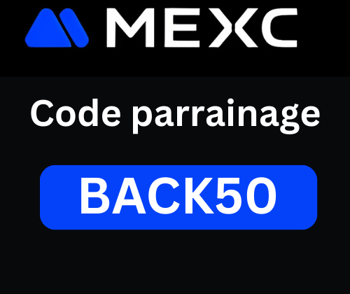 Le code parrainage MEXC “mexc-BACK50” est un code promotionnel exclusif que vous pouvez renseigner lors de la création de votre compte sur MEXC. Il vous permet d’obtenir :