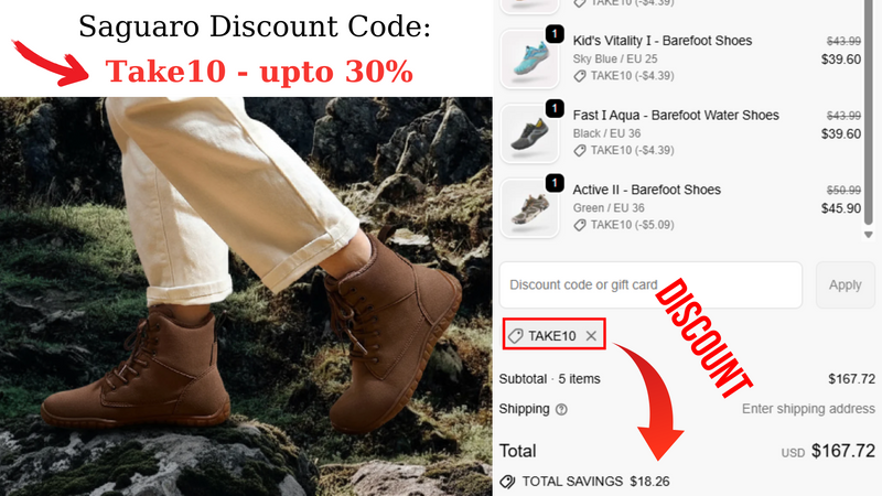 Step into 2025 with comfort, performance, and massive savings! With premium minimalist footwear trusted worldwide, Saguaro is offering exclusive markdowns β and when you add Saguaro discount code: TAKE10, you can unlock up to 30% OFF at Saguaro.com