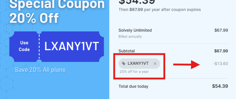 💡 Quick Tip: Combine Solvely AI Promo Code LXANY1VT with annual payment for maximum savings in 2025. You get 20% OFF instantly – a deal worth grabbing!