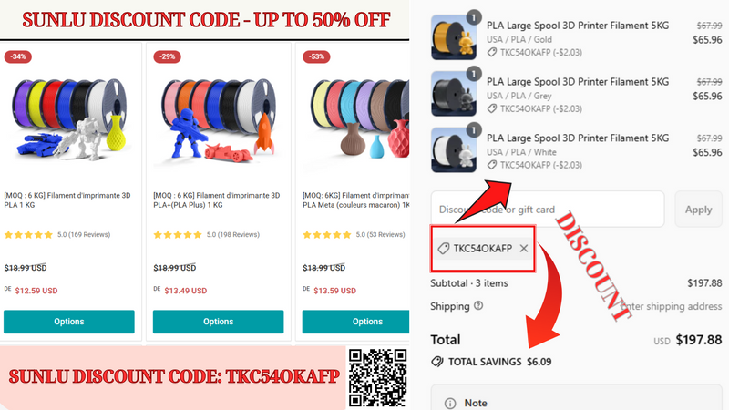 By shopping directly at sunlu.com and applying Sunlu promo code: TKC54OKAFP, you can cut your costs by up to 50% and confidently invest in professional-grade 3D printing solutions.