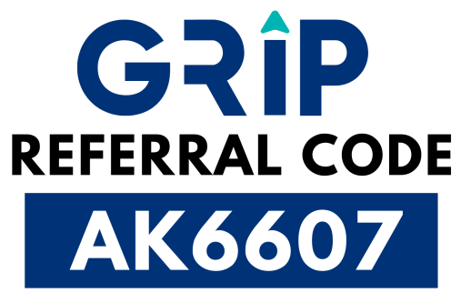 investing money. Just enter Grip Referral code AK6607, at the time of registration and get